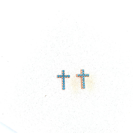 Precious Metal Plated Sterling Silver Turquoise Tiny Cross Stud Earrings