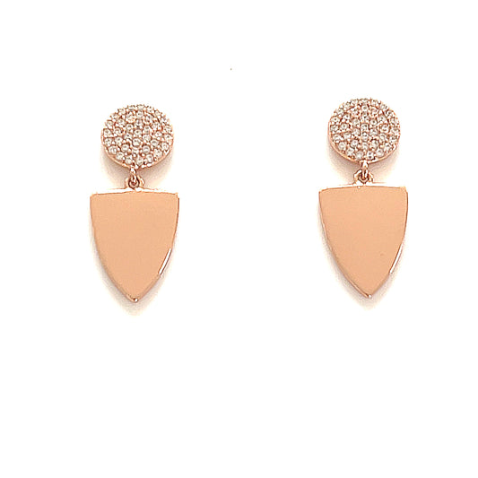 Sterling Silver Pave' Stud with Dangling Shield Shape Earrings