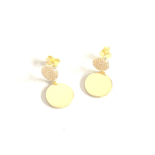 Sterling Silver Pave' Stud with Dangling Round Disc Earrings