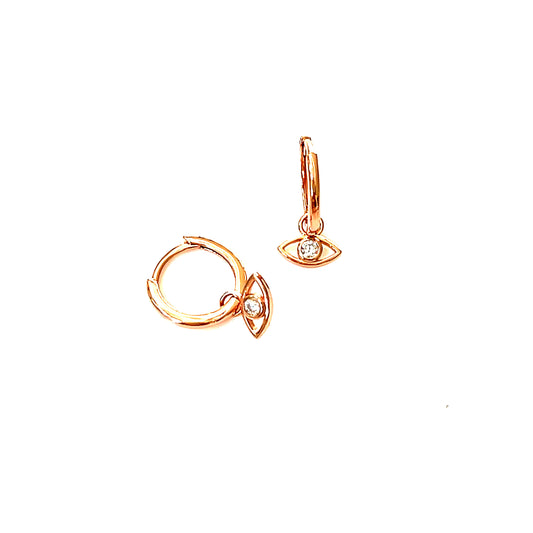 Precious metal plated sterling silver dangling evil eye on huggie earringss