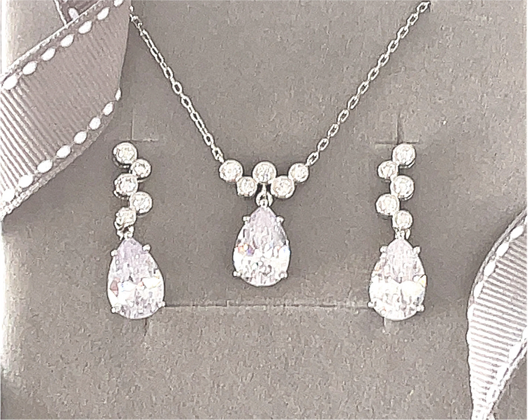 Sterling Silver Set of Butterfly Necklace and Earrings Embedded with Baguette Cubic Zirconia