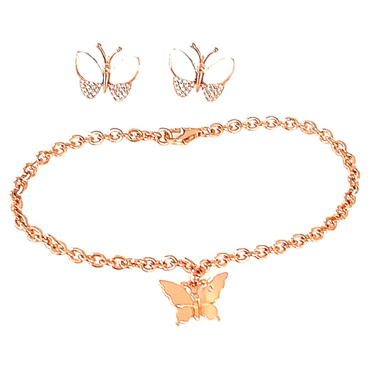 Sterling Silver Set of Butterfly Bracelet and Earrings