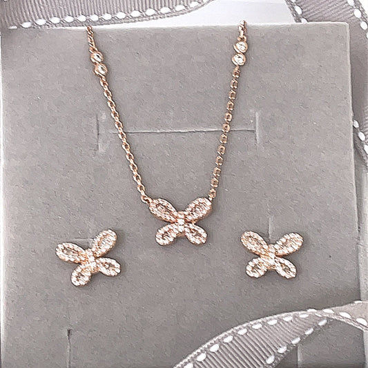 Sterling Silver Set of Butterfly Necklace and Earrings Embedded with Baguette Cubic Zirconia