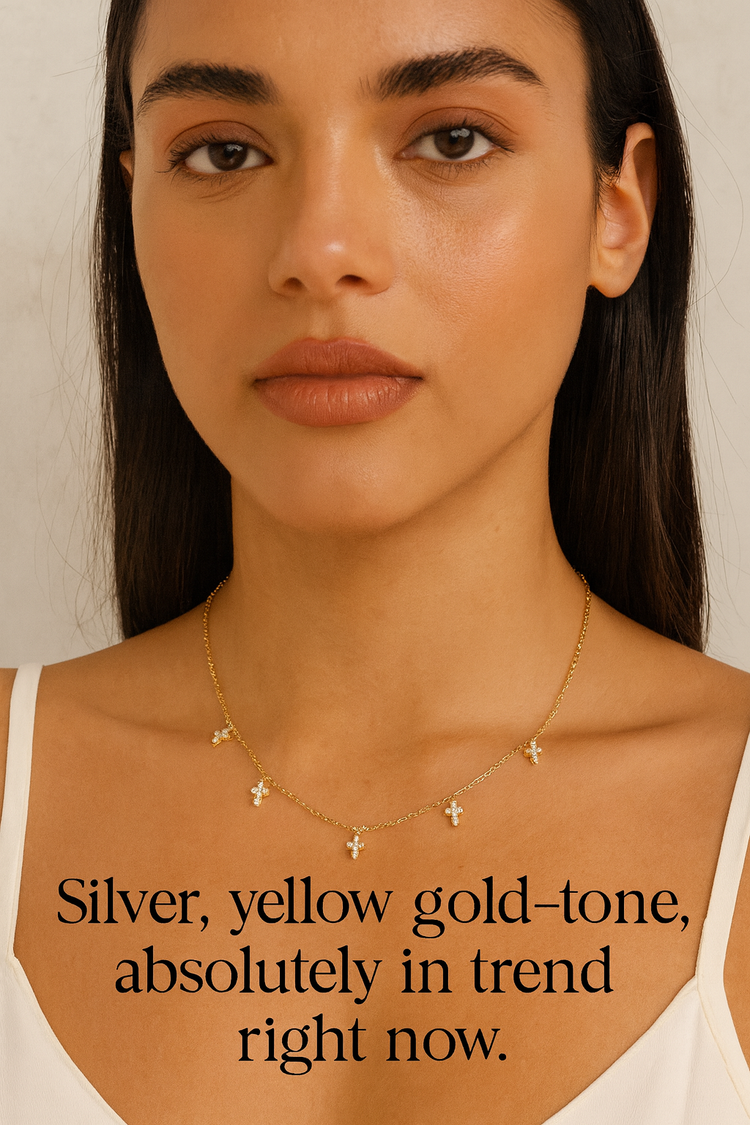 Luminous Grace celebrates quiet elegance and spiritual symbolism through a curated series of Petite Cross Pendant. Each piece is crafted in sterling silver with rose gold-tone, yellow gold-tone, and rhodium plated finishes, adorned with faux pearls, sparkle CZ, and opalite in hues of celestial blue and luminous white. these small-scale designs are perfect for layering, gifting, or subtle daily wear-bring light and grace to every look.