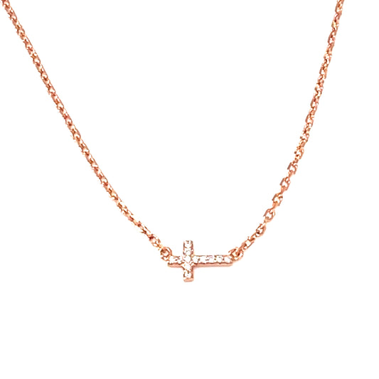 Luminous Grace: Petite CZ Pavé Horizontal Cross Necklace