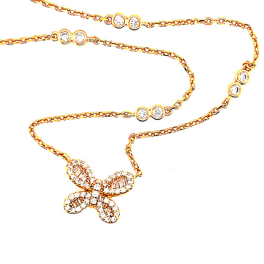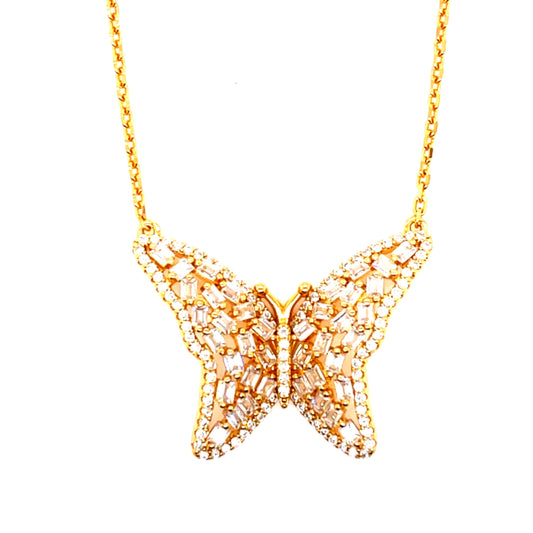 Sterling Silver Embedded Baguette Stone Butterfly Necklace
