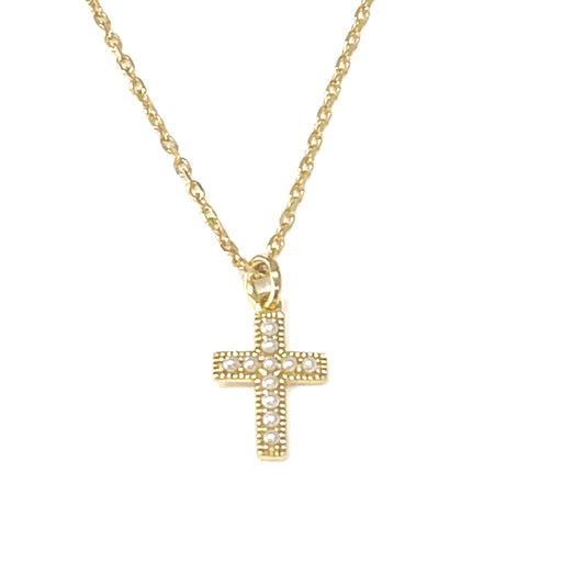 A timeless silver cross pendant, medium in size and elegantly paved with micro pearls, opalite inlay, and brilliant cubic zirconia. This classic silhouette radiates quiet luxury, perfect for everyday wear or gifting. Suspended from a sleek silver chain, it’s a signature piece that whispers grace and sparkle.
