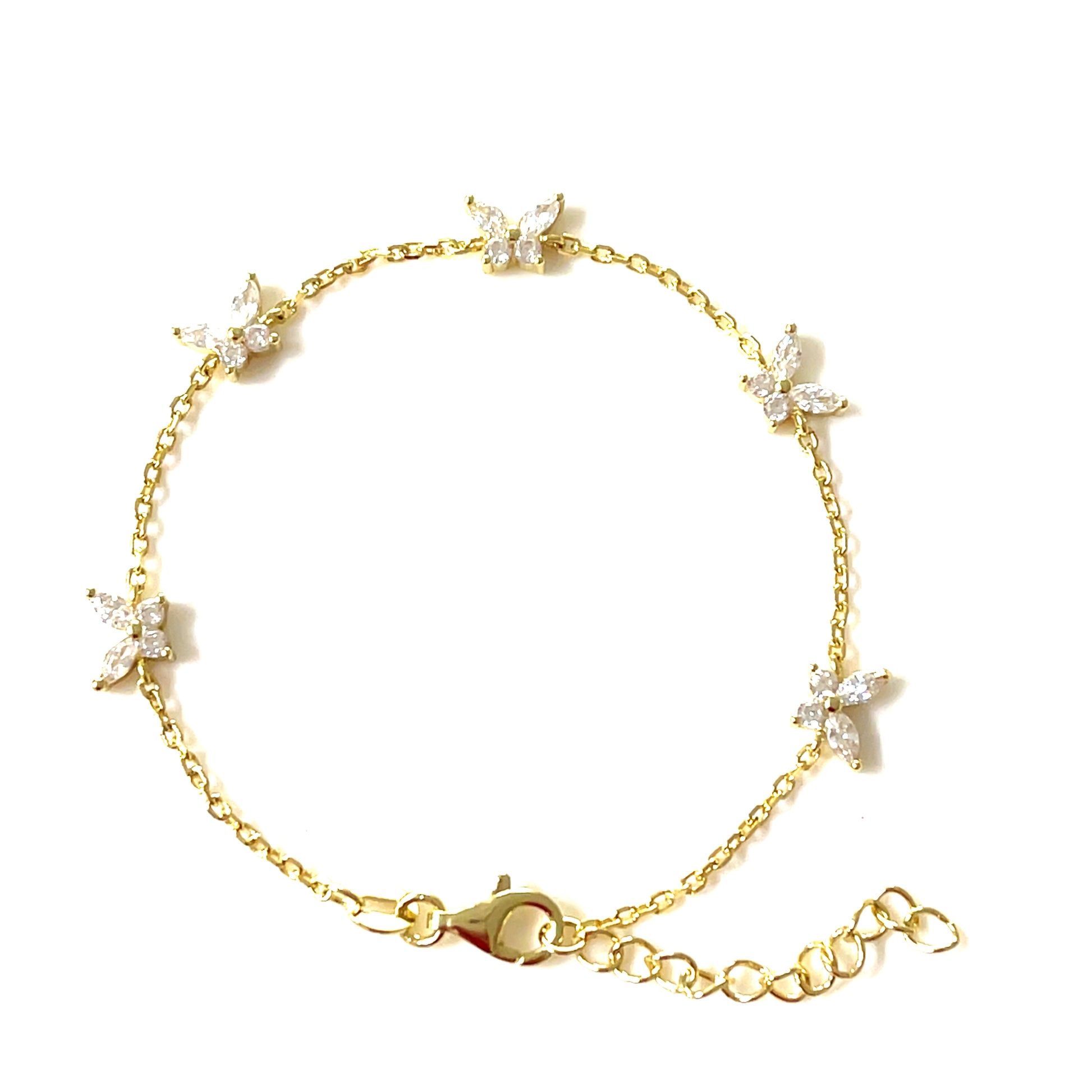 🦋Delicate and dreamy, these bracelets crafted in silver with rose gold-tone, yellow-gold tone, feature five butterfly charms, each formed from marquise-cut stones that shimmer like wings in flight. Light-catching and ethereal, it evokes the magic of transformation and freedom. With an adjustable clasp for comfort, it’s a graceful addition to the Whimsy Wing collection—where elegance meets enchantment.