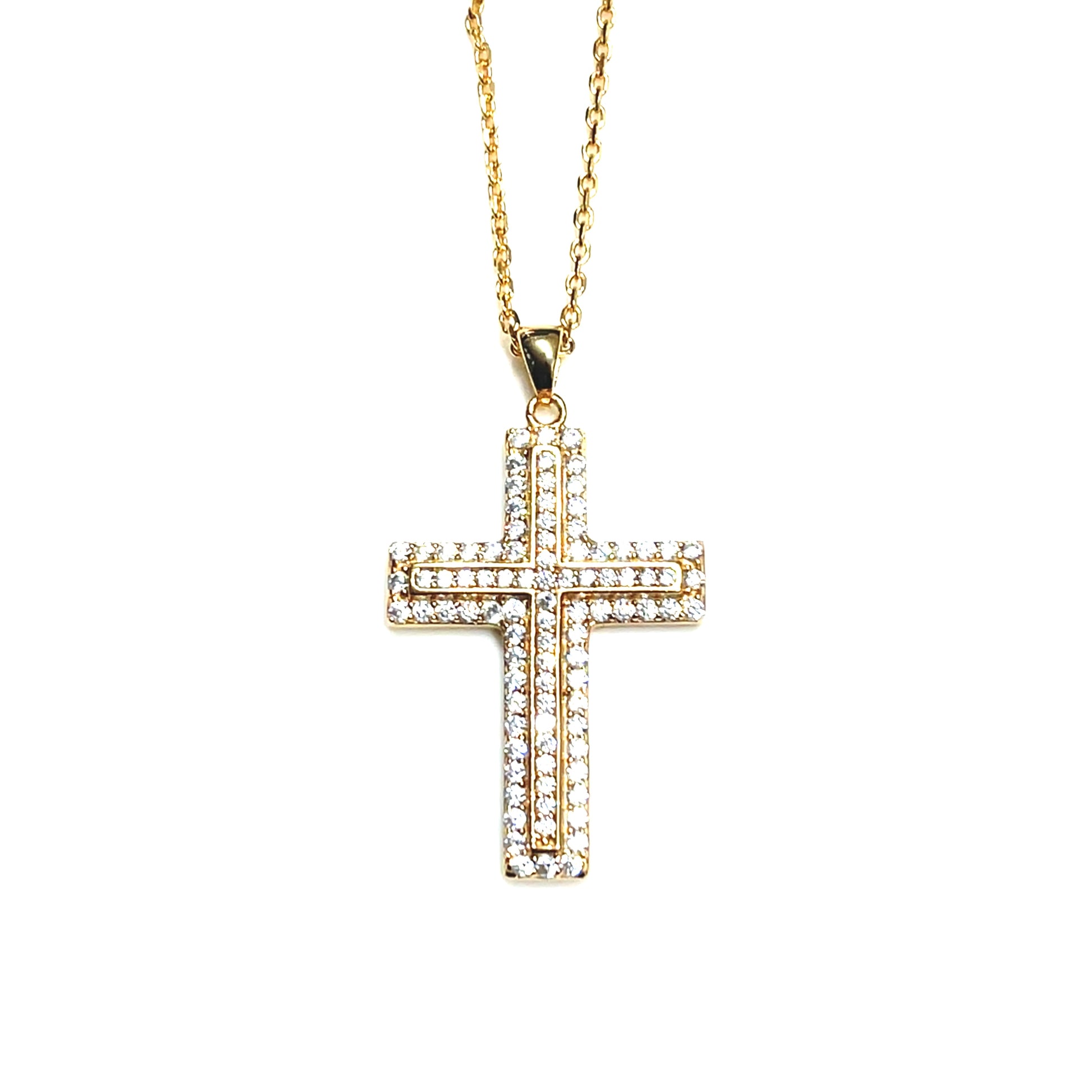 Outline in a single row of brilliant cubic zirconia, this cross pendant offers a clean, symmetrical silhouette. A versatile piece that speaks to tradition with a modern shimmer.