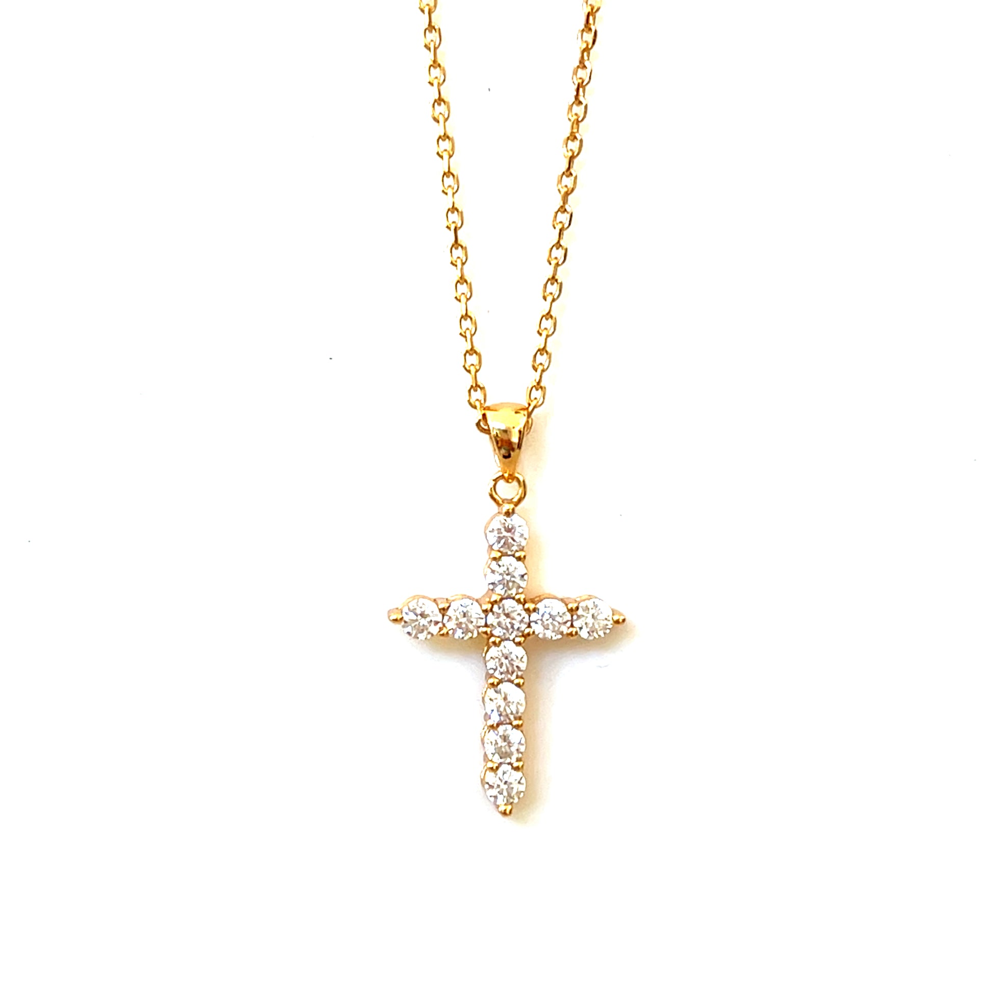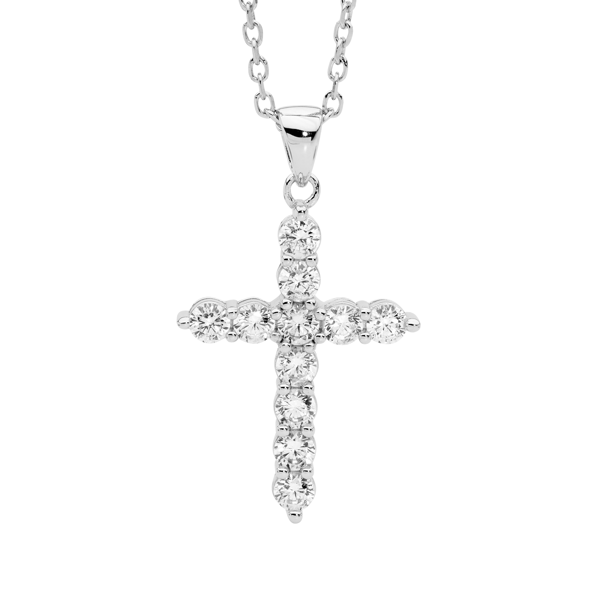 A timeless silhouette featuring brilliant cut cubic zirconia set in a classic vertical cross, this pendant sparkles with clarity and elegance, offering the look of fine diamonds at an accessible price. A popular design inspired by high-end originals, it's perfect for layering or gifting.