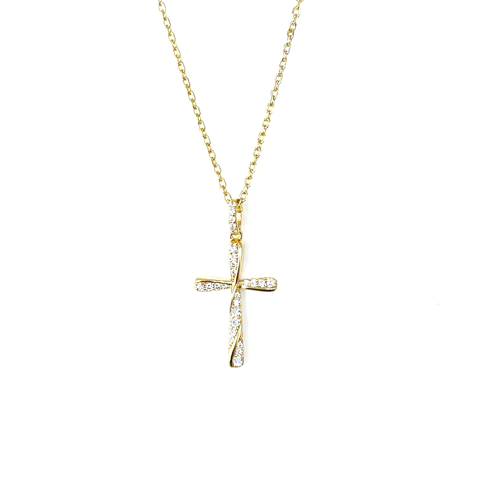 A gentle curve along the vertical bar adds softness to this cubic zirconia-encrusted cross. Suspended from a durable cable chain, it's a poetic take on classic symbolism.