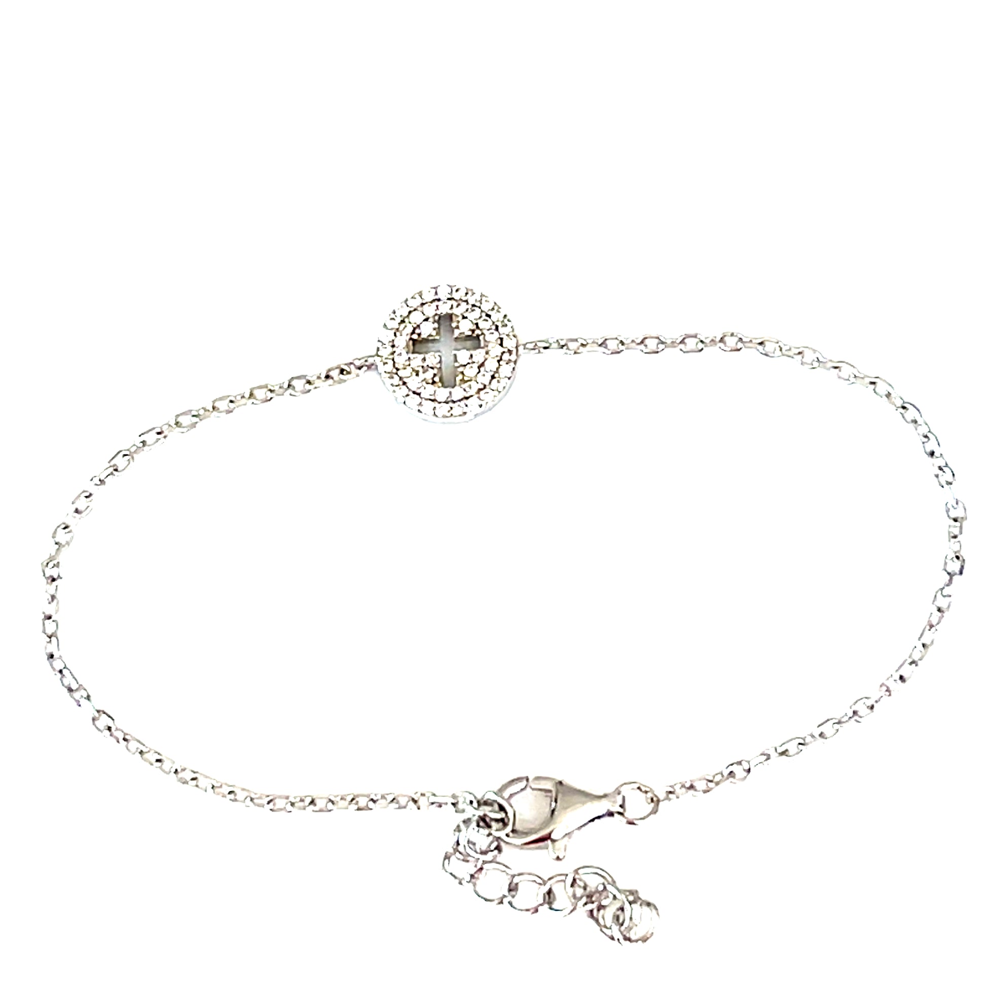Crafted in 925 sterling silver, cubic zirconia paved set hollow cross bracelet. This luxury style cross bracelet is designed for quiet strength and everyday elegance, it's perfect for layering or wearing solo as a symbol of faith and grace.