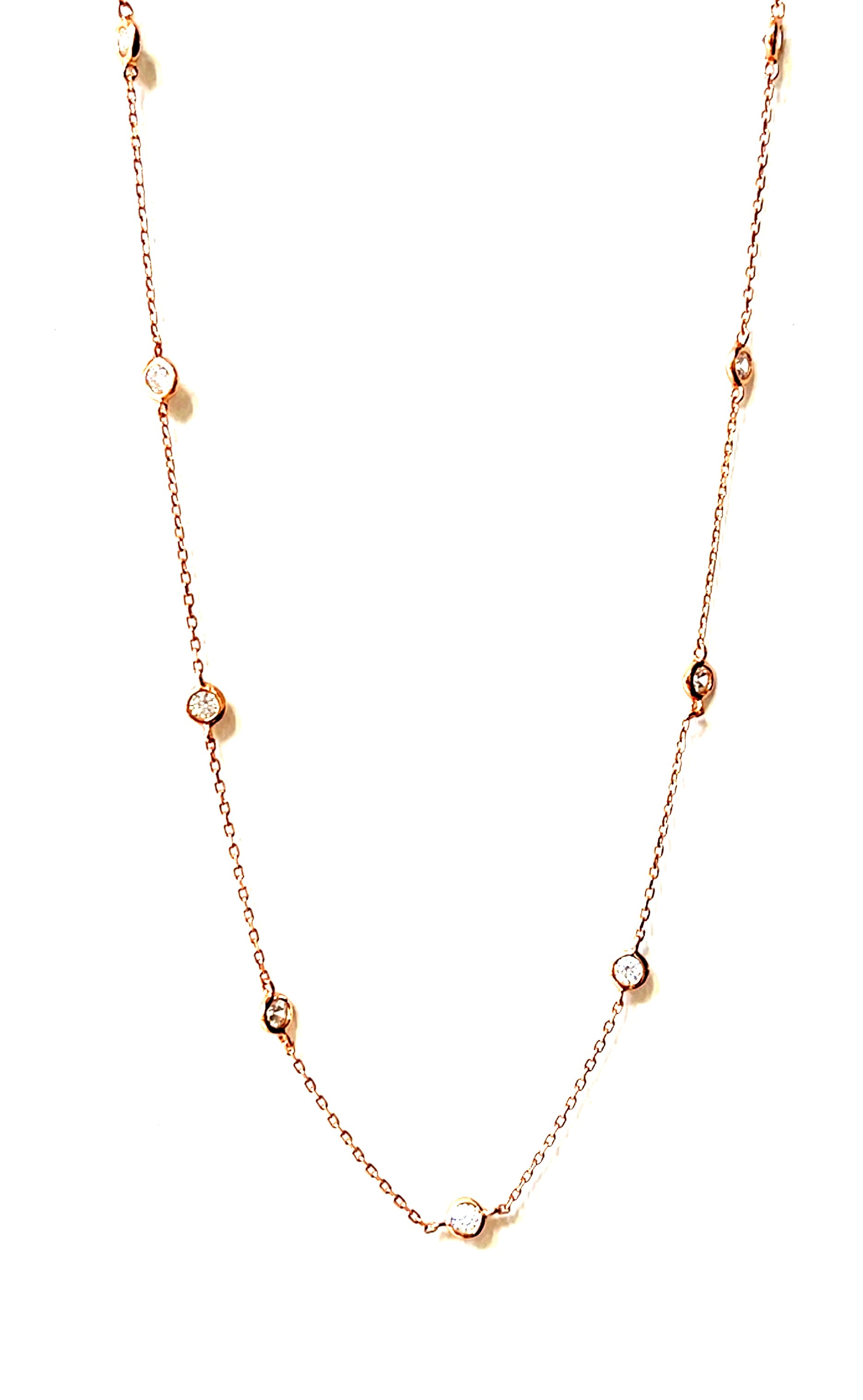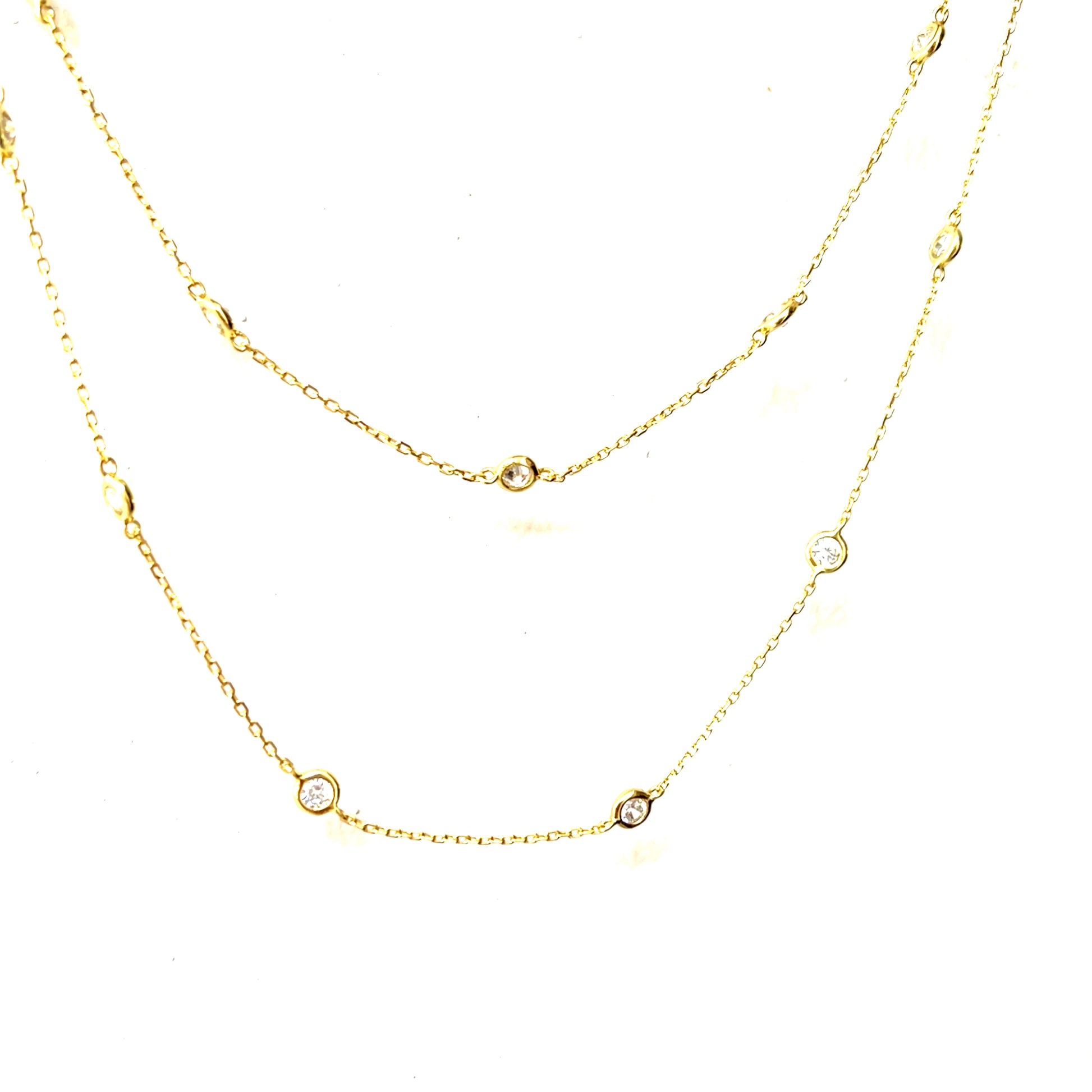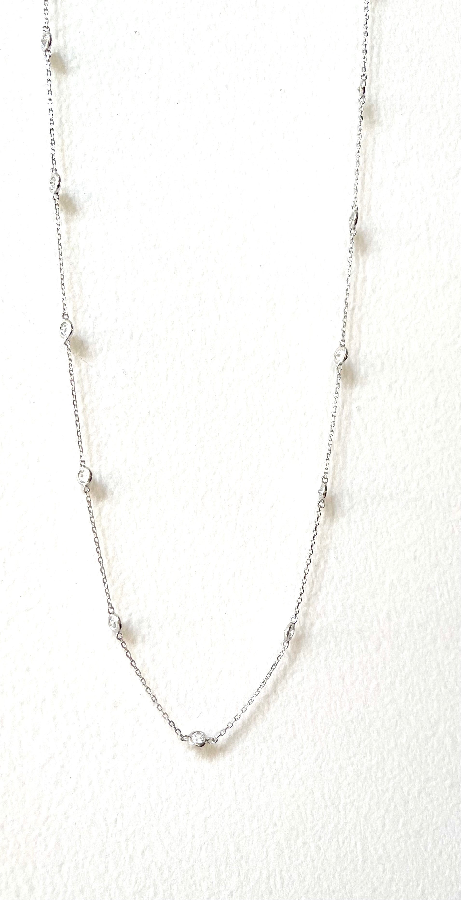 A graceful cascade of brilliance, this 100 cm necklace features 28 dazzling cubic zirconias space with elegant precision. Each stone catches the light with playful sparkle, creating a look that's both refined and joyful. Wear it long for effortless glamour or double it up for layered sophistication - perfect for elevating everyday style or adding shimmer to special moments.